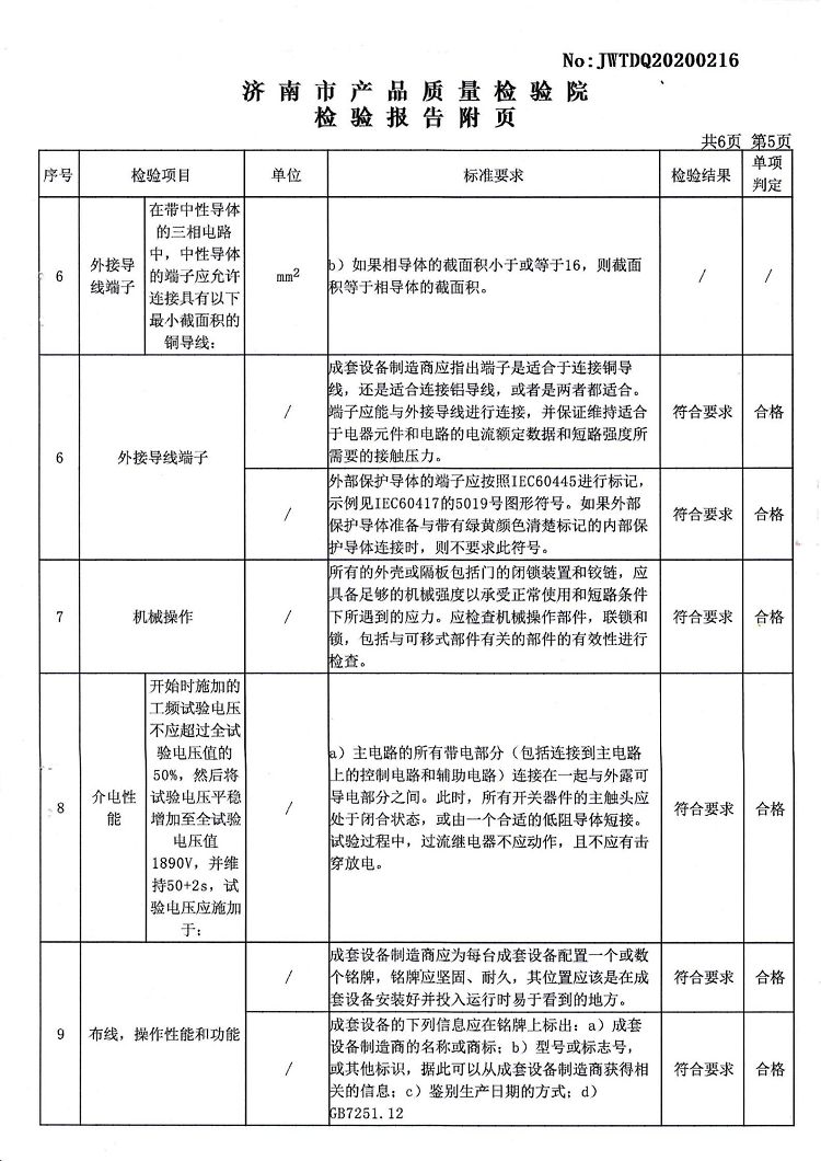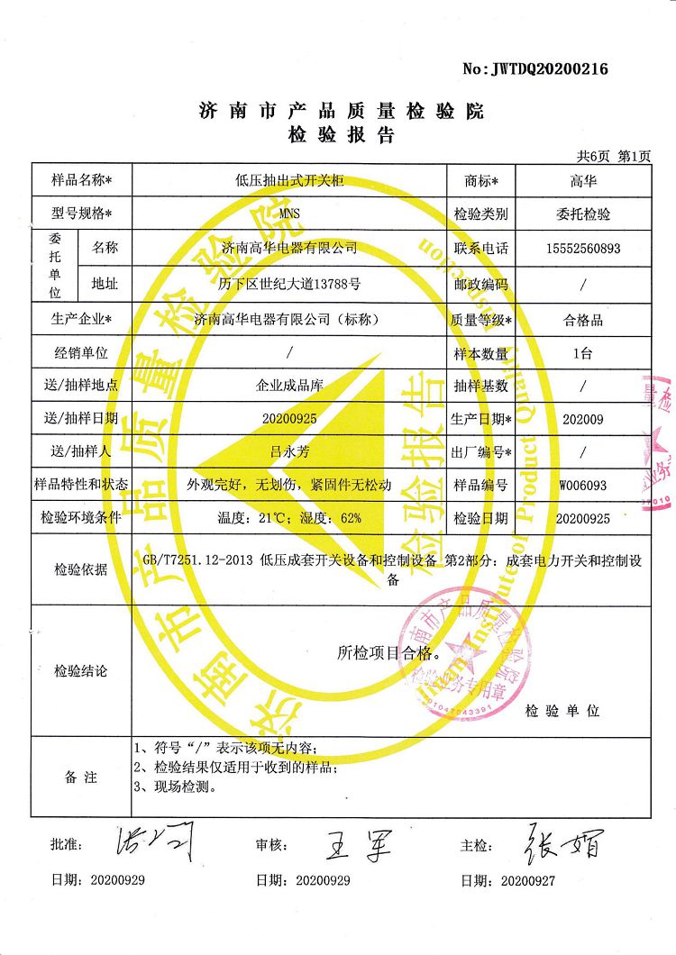 濟南高華電器有限公司 > 榮譽資質 > 低壓抽出式開關柜MNS 檢測報告